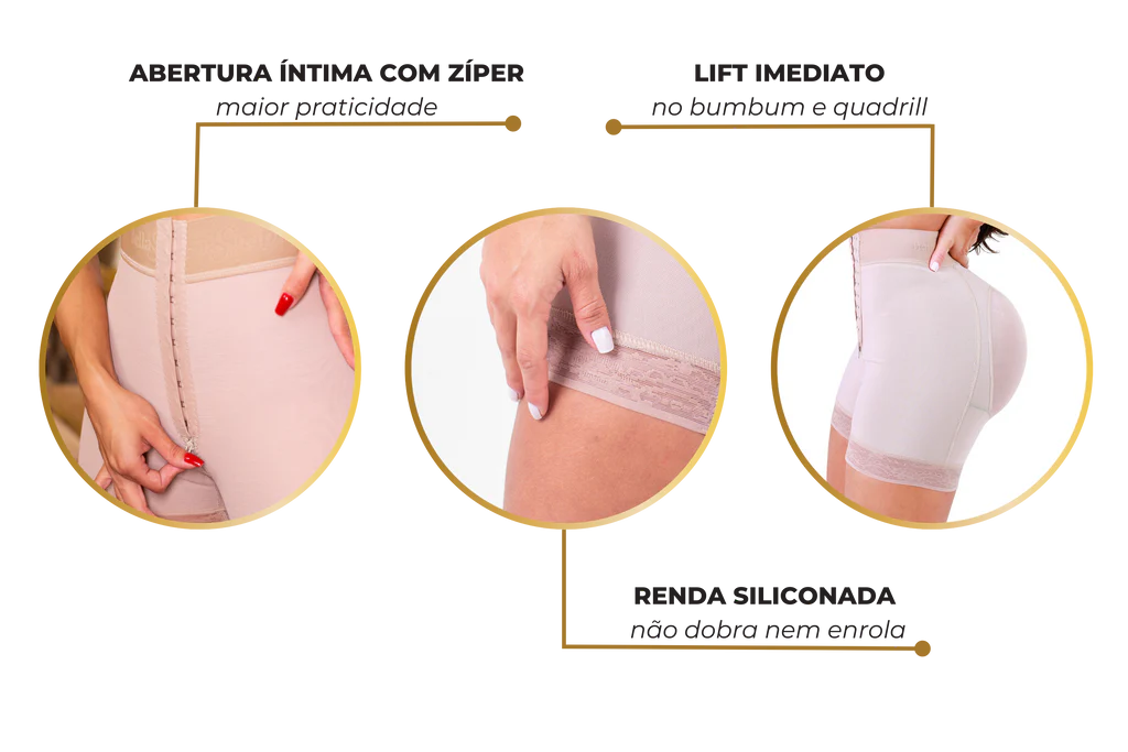 - promove lift imediato nos glúteos, deixando o bumbum empinado, redondinho e maior, sem nenhum enchimento nem bojo.